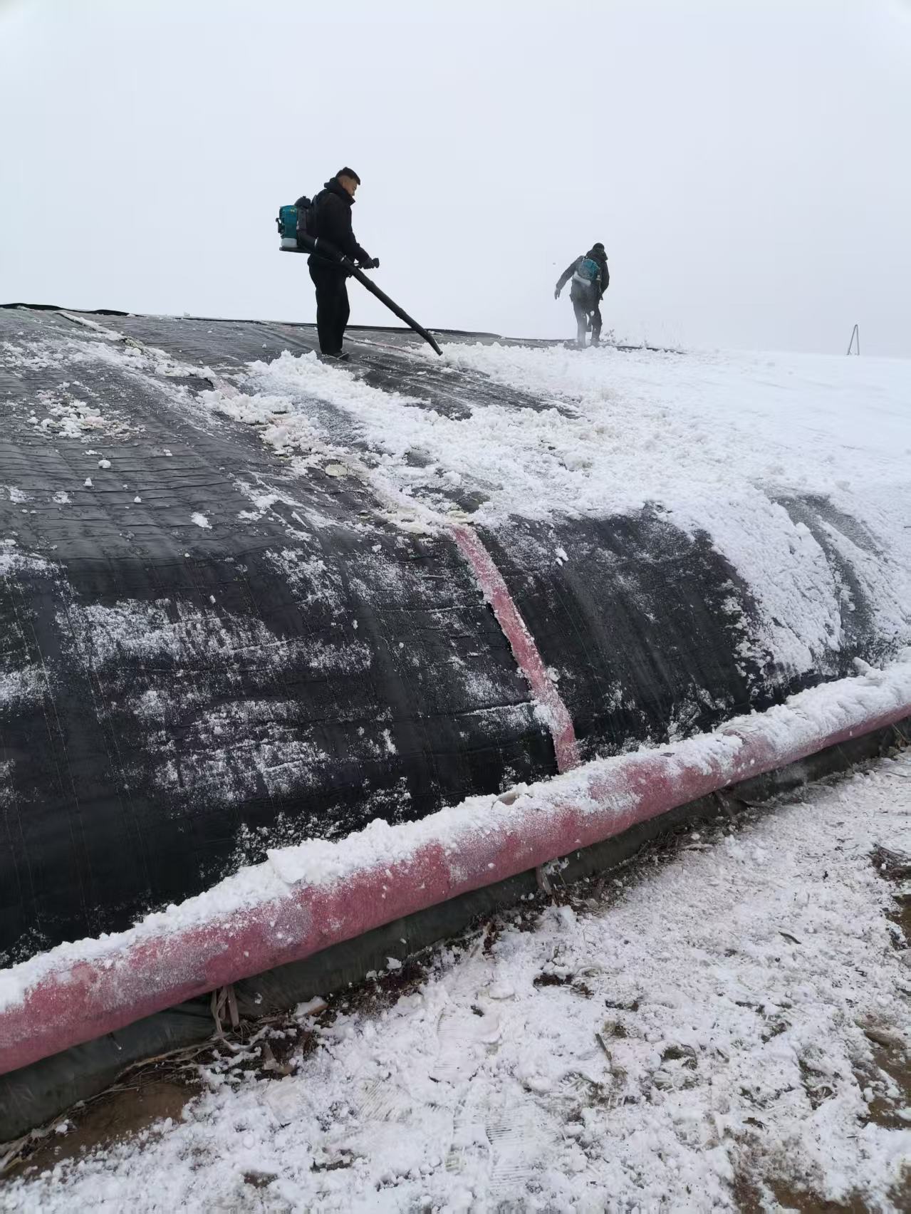 12月13日,桃苑文旅公司進(jìn)行大棚除雪工作。